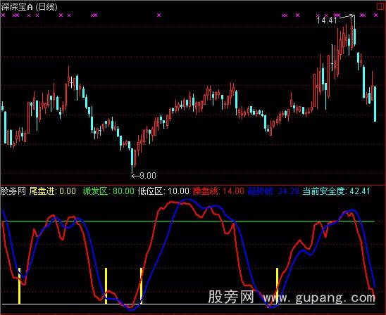 当前安全度:100-EMA(0.191*REF(CVAR4,1)+0.809*CVAR4,1),LINETHICK2,COLORFFFF00,NODRAW;