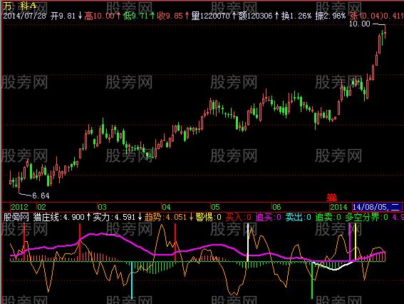 IF(猎庄线<多空分界,多空分界,猎庄线),COLORFF00FF,LINETHICK2;
