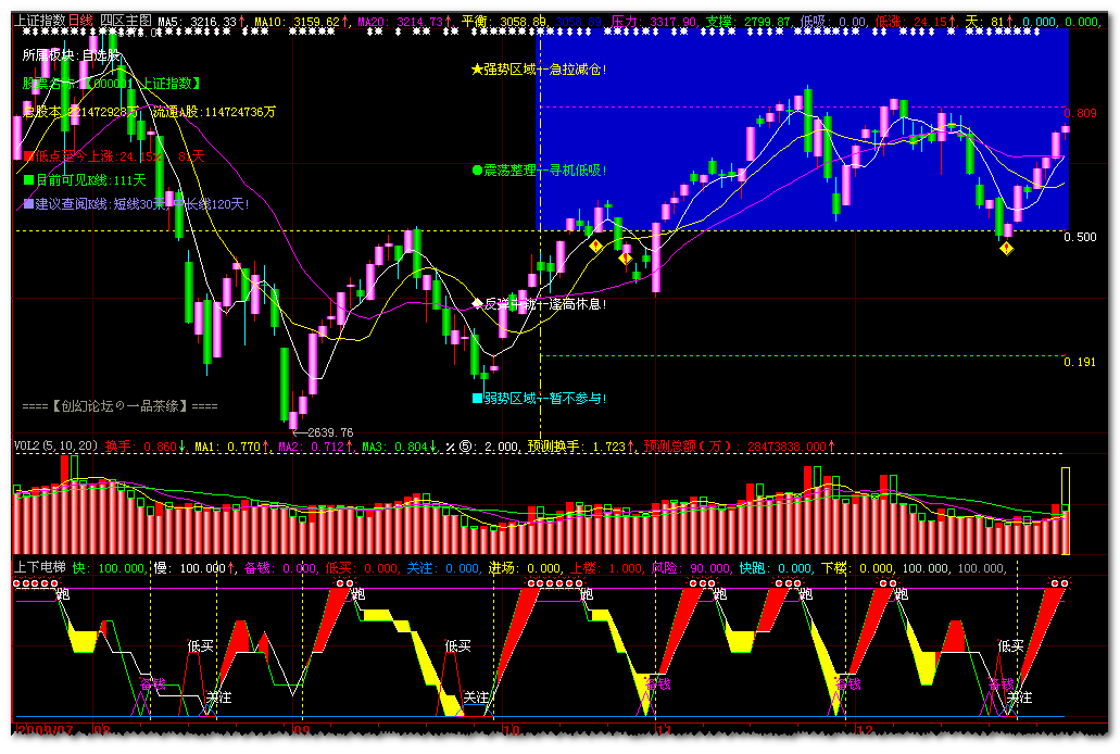 {上下电梯----创幻论坛一品茶缘编写副图指标,飞狐版本}