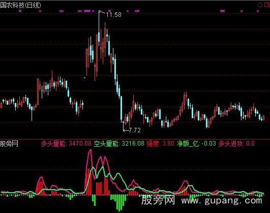 强度:(多头量能/(多头量能+空头量能)*100-50)*2,COLORRED,NODRAW;