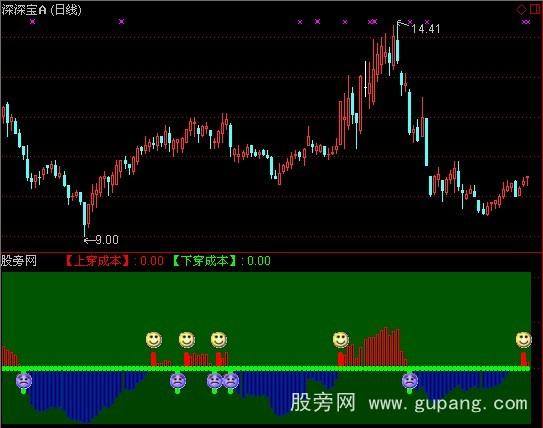 【上穿成本】:IF(CROSS(赢利,单峰),15,0),STICK,LINETHICK5,COLORRED;
