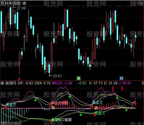 DRAWTEXT(B2,D-0.20,'●KDJ底背'),COLORFF00FF;