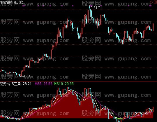 STICKLINE(C>=REF(C,1),REF(S三角1,1),S三角1,2,1),COLORRED;