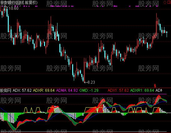 OMD:(ADX-2*ADMA+ADXR)/2, COLORSTICK;