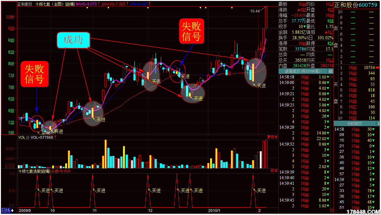 十战七胜选股公式(副图) (选股条件:买进=1)