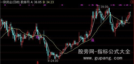DRAWTEXT(CLOSE>A AND A>B AND B>REF(B,1) AND crOSS(CCI,100) AND MacD1>0 AND REF(MACD1,1)>0,B,'追'),COLORMAGENTA;