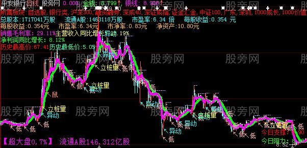 DRAWTEXTREL(0,950,'【超大盘0.7%】 流通A股'+FINANCE2(37)/10000+'亿股'),LINETHICK2,ColorFF00FF; end;