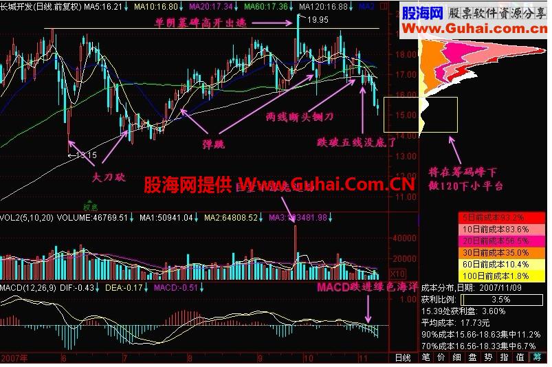 总之必须是庄家在出货的股票跌破五线,那就没底了,要下跌很长一段时间了。