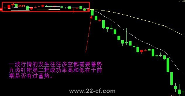 注:这种单边一波行情的上涨和下跌的发生往往存在的一个条件是前期保持震荡横盘,俗话说横有多长,竖有多高,看下图。