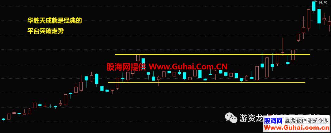 平台突破是一种上涨蓄势再上涨的过程,时间可长可短,股价在平台内往往围绕着一个价格区间作箱体运动,一旦突破,力度通常都不小。我们常用的“喜鹊上枝头”就是时间比较短的平台突破走势。
