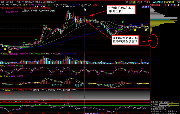 简单地说,筹码峰全部在下方集中,基本上可以判断为股票的底;筹码峰全部在上方集中,基本上可以判别为股票的顶。