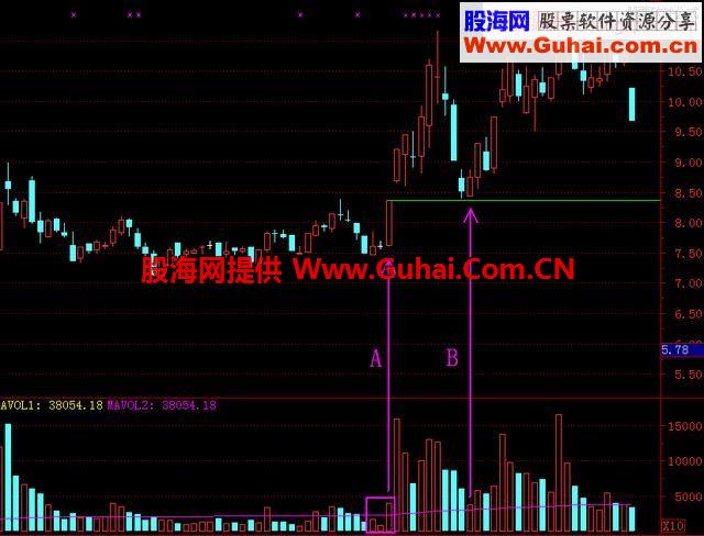 A- B的成交量有什么意义,在涨停板突破压力区的时候,回踩洗盘是洗散户的过程,什么样的缩量才代表散户筹码得到有效控制,我们看看A与B、突破关键压力区的 涨停板是倍量突破,突破压力区之前的成交量与突破之后回踩的成交量做对比,缩量并不代表浮动筹码的清理,也不代表庄家清理过程中的满意程度,所以我们在缩 量前提下的要求,就是涨停板之后的回踩成交量必须缩量到涨停板突破之前的成交量。这样的缩量才能代表浮动筹码得到有效控制。