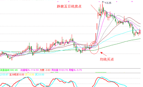 3、 均线卖法。股价回落跌破五日线时卖出。