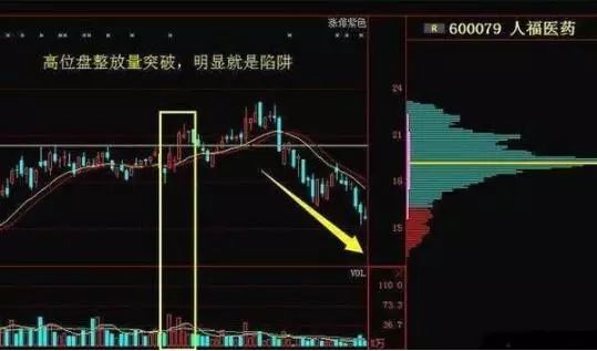 庄家在高位突破时,放出巨量(超过10%的换手率),散户只要静下来想想,庄家此时已经获利颇丰了,为何突破会放巨量,很明显,巨量是短线跟风盘扫货和庄家边派边拉共同达成的,这是明显的庄家出货手段,此时庄家都开始出货了,这股还有得玩吗?