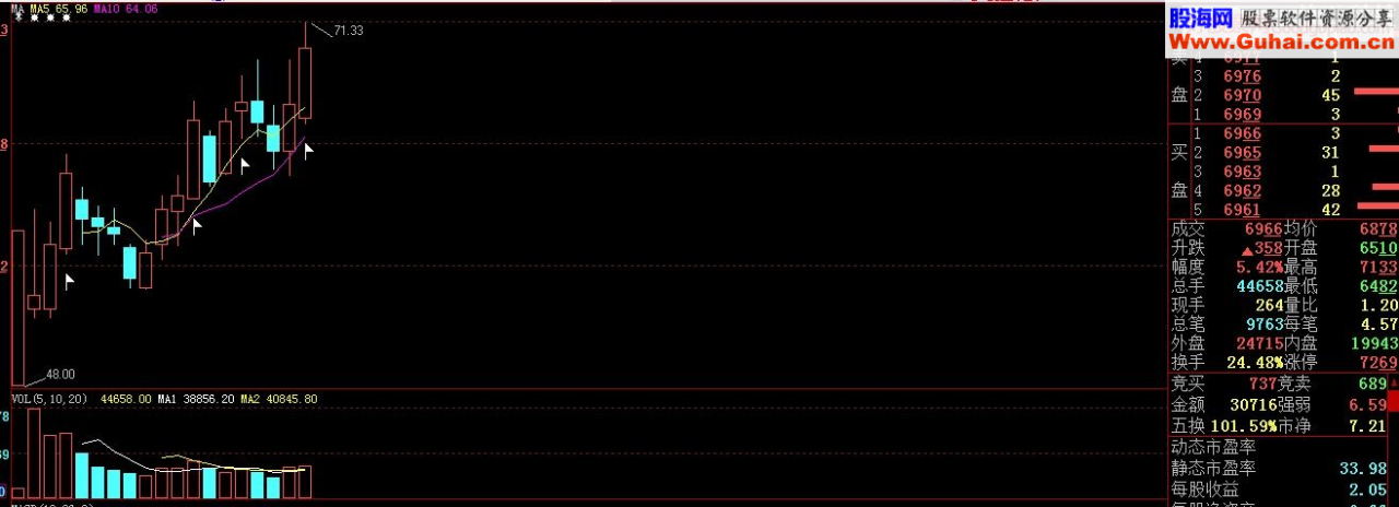 该股如果不是大盘尾盘不理想,应该不会开板下跌,周五早盘的调整只是顺应周四尾盘的惯性而已,盘中迟早会起来的,因为已经处于上升趋势了。