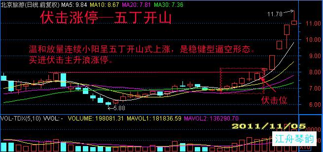 方法是在把握目标出现位置的前提下提前一天进入伏击位置等待涨停出现。
