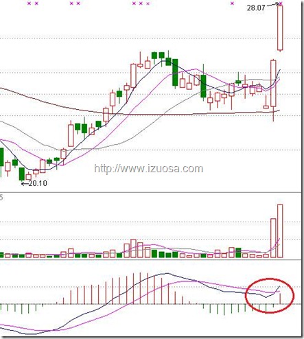 DIF和DEA顺利的完成一个波段,一定是经历一个交叉——发散——收敛——交叉的过程。MACD红柱也是这样一个过程,转势——发散——收敛。一个运行状态良好的股票也一定都是遵循这个规程的。