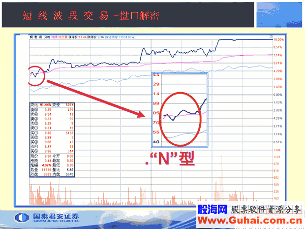 特别提示:在高开上涨时,关键看股价回探时有没有完全回补缺口。通常情况下强势股是不会回补分时缺口的,从而形成“N”字型走势好和“W”形走势的走势。