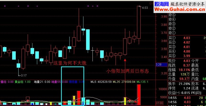 除了呵呵作的这只股外,另外的三只涨停股有两只有相同的涨停基因。基因就在小倍阳上。