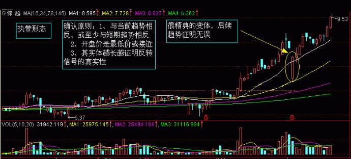 心理意义:一个下跌趋势持续了很长时间,顺势低开后,多头开始发力,如果第二天表现为更多的买入,则证实无误 。