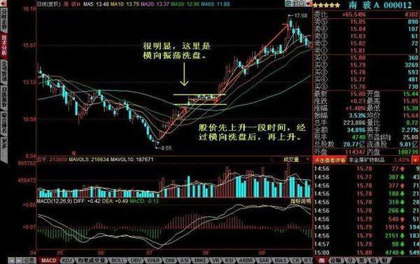 这种方式一般在优质股票或者热门题材股票中,因为主力一旦向下打压股价,很可能打压出去的股票变成肉包子打狗——有去无回的局面,因此只好通过以时间换空间的方式洗盘,进行横向振荡是此时最好的策略了。