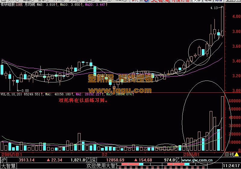 请新同学注意“连续的巨量推动大阳从价托平台升起”这一句话的含义,不要把股价在高位时那种连续的巨量推动长阳加速赶顶也变成“东方红 大阳升”啊!
