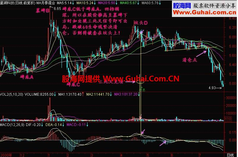(4) 掌握好止损点,只要股价跌破60日平均线,那么该股的【坟头】已经形成,应该坚决卖出。