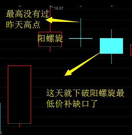 一般这种阳线螺旋后低开的机会较多